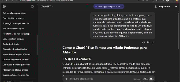 Para você, que está no universo de afiliados, (como nesse projeto o ‘Afiliado Fera’, com foco em tráfego pago e funil), o ChatGPT representa uma vantagem estratégica.
