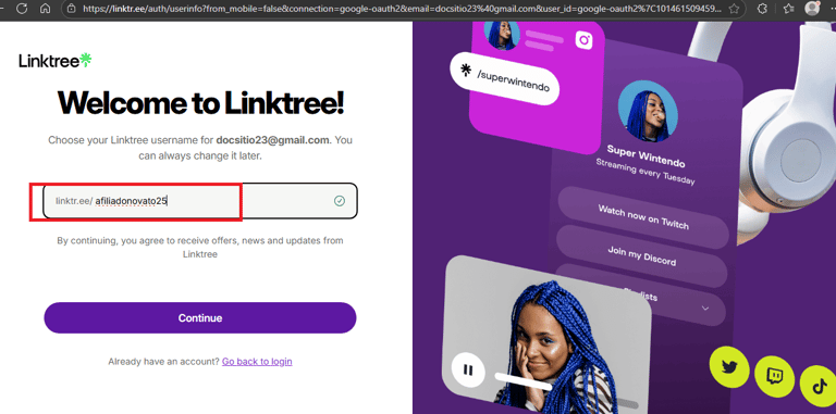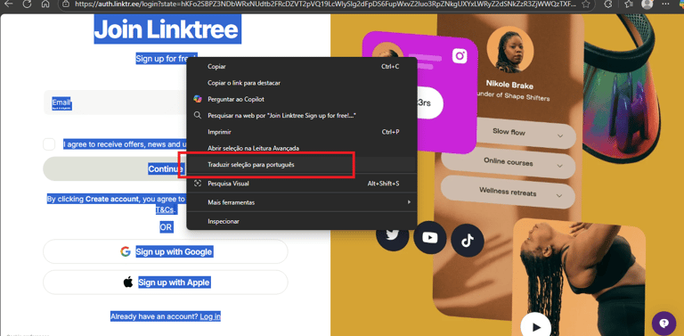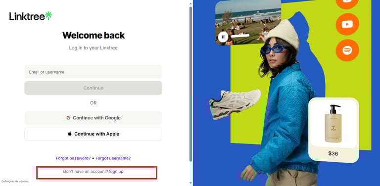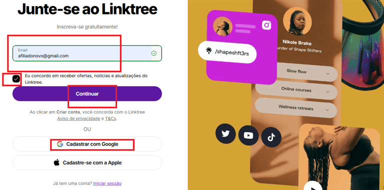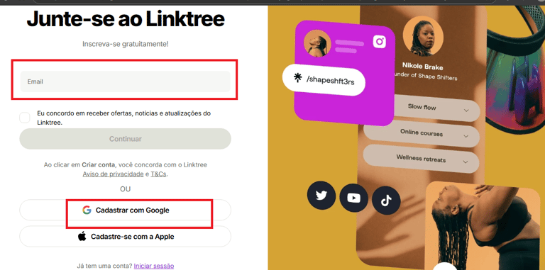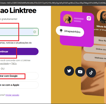 Bem, para se cadastrar no site do Linktree, se você não é cadastrado, segue o mesmo passo a passo padrão de sempre para cadastros...