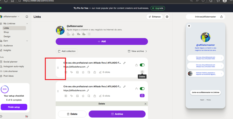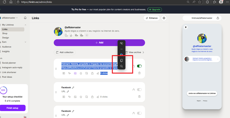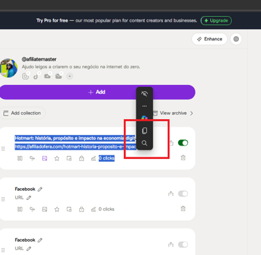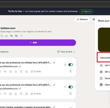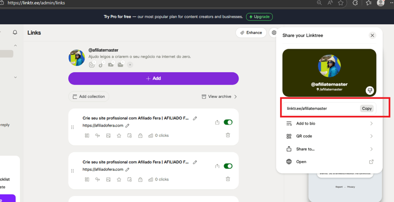 Agora, clique no link/ícone acima e copie o seu Linktree.