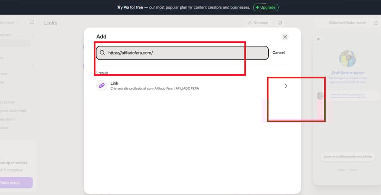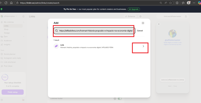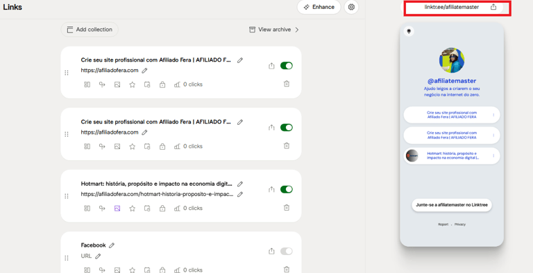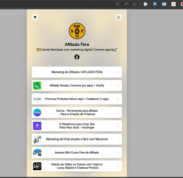 Cole o link no navegador e clique “Enter”, para visualizar a sua mini página de links.