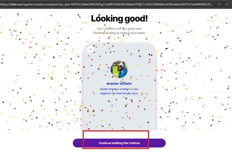 Agora você já pode compartilhar a sua mini página de links, pode colocar o link novo na sua Bio no Instagram, e onde mais você quiser. Pode espalhar ele pela internet.