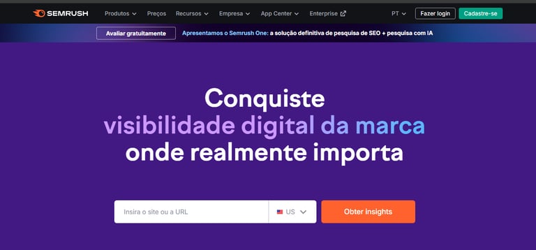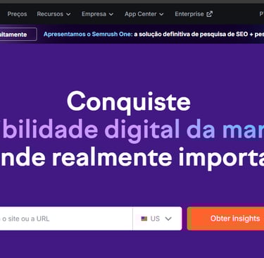 O SEMrush é uma plataforma profissional (com versão gratuita limitada) para análise de SEO, tráfego orgânico, anúncios pagos e concorrência digital. Com ela, você pode ver quais sites estão ranqueando para certas palavras-chave, quanto tráfego recebem e quais estratégias estão usando.