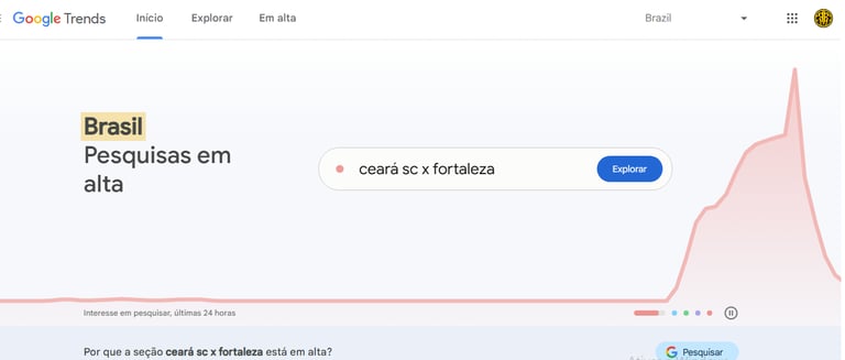 O Google Trends é uma ferramenta gratuita do próprio Google que mostra o volume de interesse de pesquisa por uma determinada palavra-chave ao longo do tempo. Ele mostra tendências de alta ou queda em diferentes regiões e períodos.